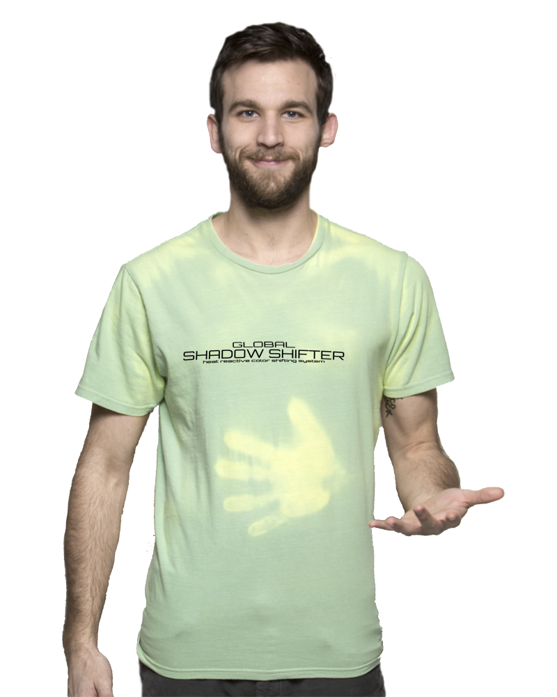 Our color changing t-shirts change color when you touch them. In the 90s a very popular color changing t-shirt called Hypercolor was a huge hit, but it had some problems with washing,drying and printing.